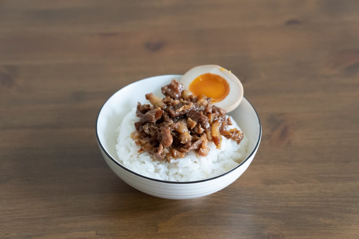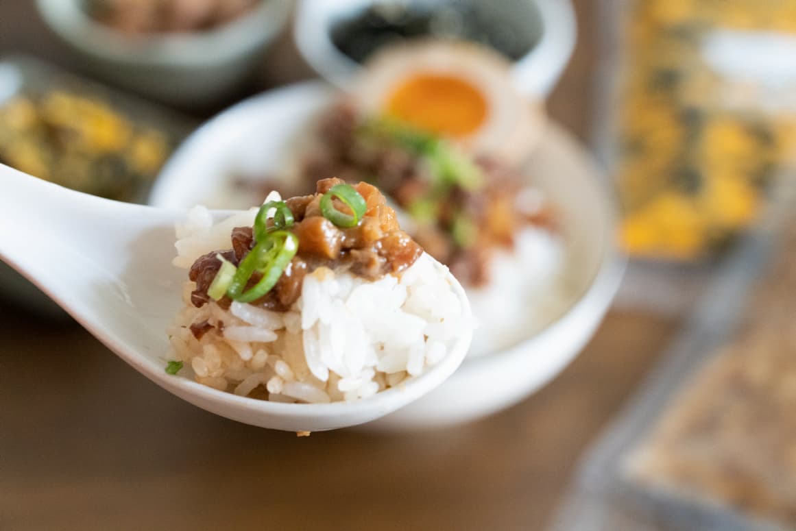 在熱騰騰的飯上,淋上滿滿一匙滷肉, 和著膠質拌開, 那是一口一口停不下來的好滋味。
