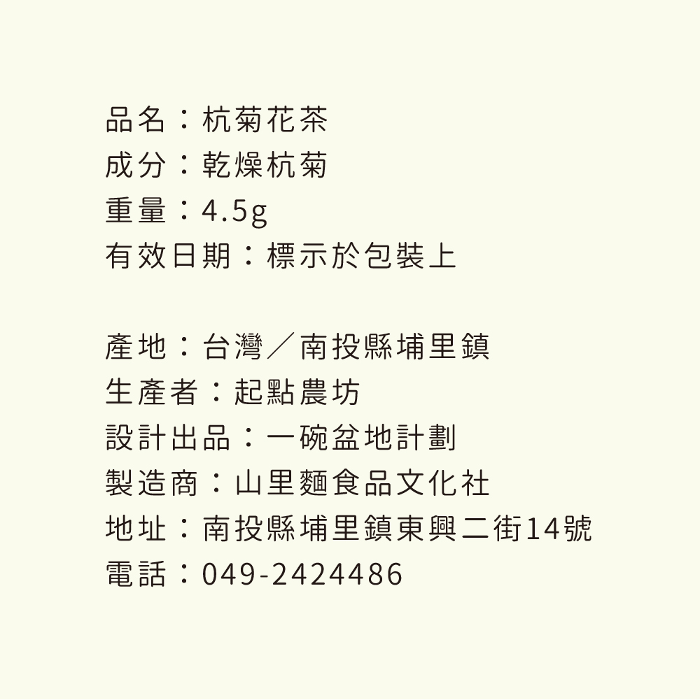 成分 | 友善耕作乾燥杭菊 |