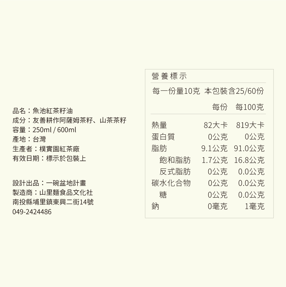 | 產品名稱 | 魚池友善紅茶籽油 |