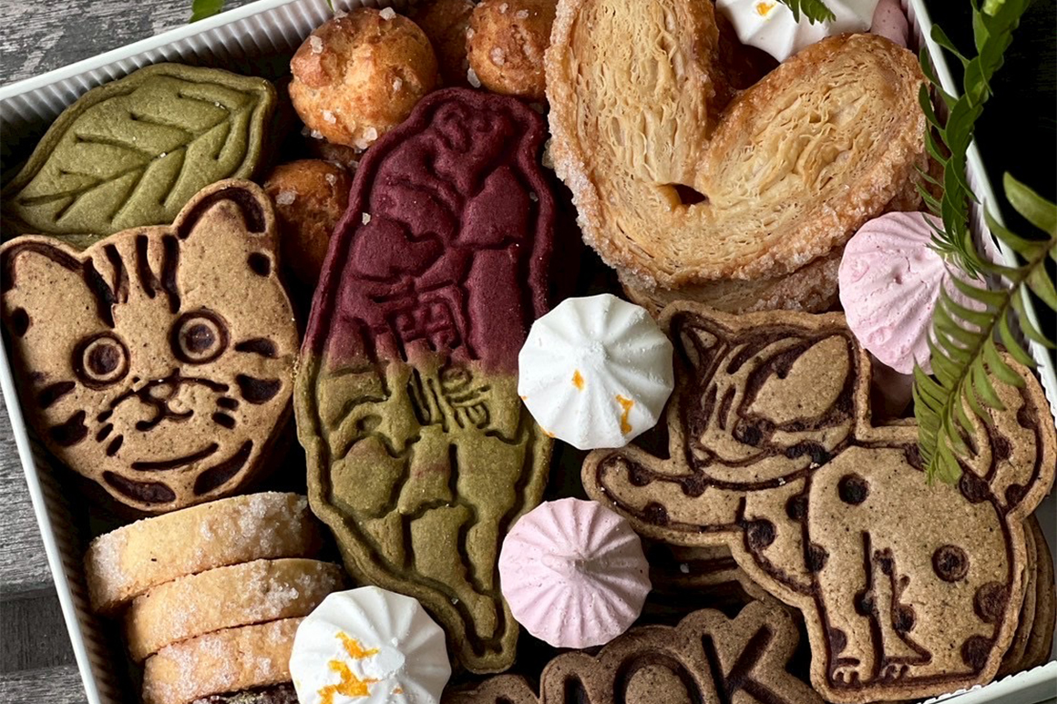 | 內容物/數量 | 檸檬圓餅乾x3片、可可鑽石餅乾x3片、石虎青蕉餅-全身x3片、紅玉圓餅乾x2片、綠茶葉子餅乾x3片、石虎青蕉餅x1片、紅玉SMOK 餅乾x3片、柳橙蛋白糖(填滿)、紅龍果蛋白糖 (填滿)、糖粒小泡芙 (填滿)、南嶋雙色壓模餅乾x3片、蝴蝶千層酥x3片 |