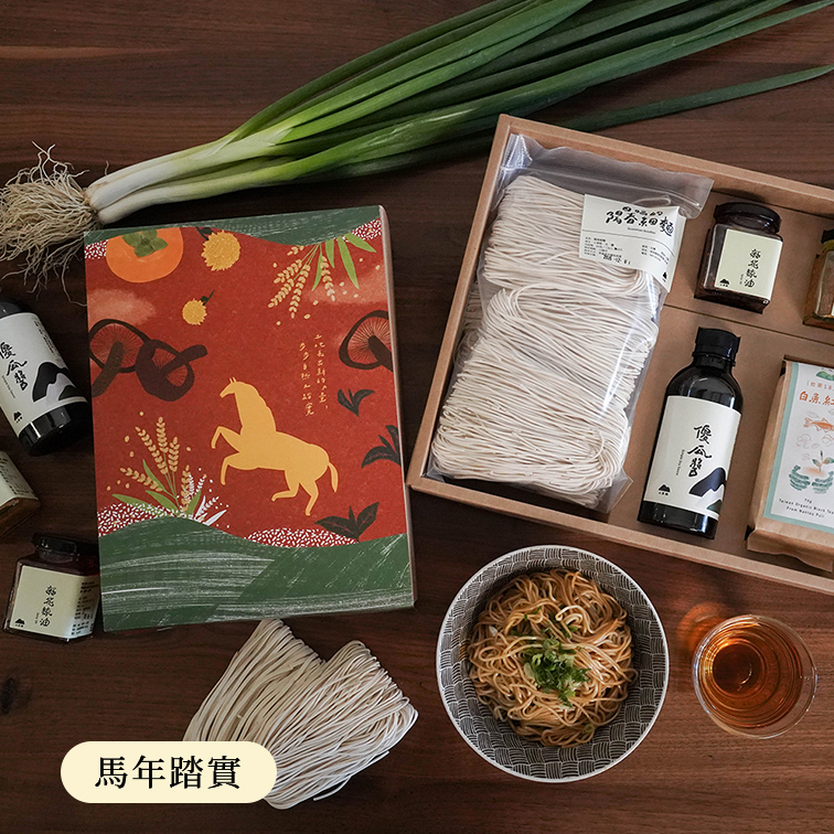 打開來自山裡的拌麵喝茶禮盒,享受拌一碗麵、沏一壺茶的悠然時光。