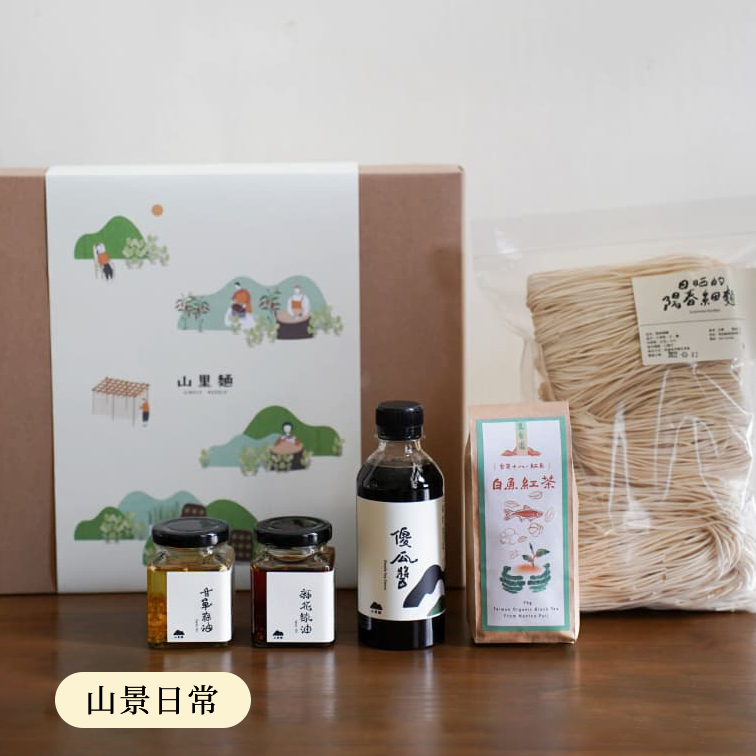 | 規格 | 山里麵-傻瓜醬/一瓶 山里麵-甘單蒜油/一罐 山里麵-麻花辣油/一罐 山里麵-陽春細麵/10入 昱香園-有機白魚紅茶(紅玉台茶18號)/一包 |