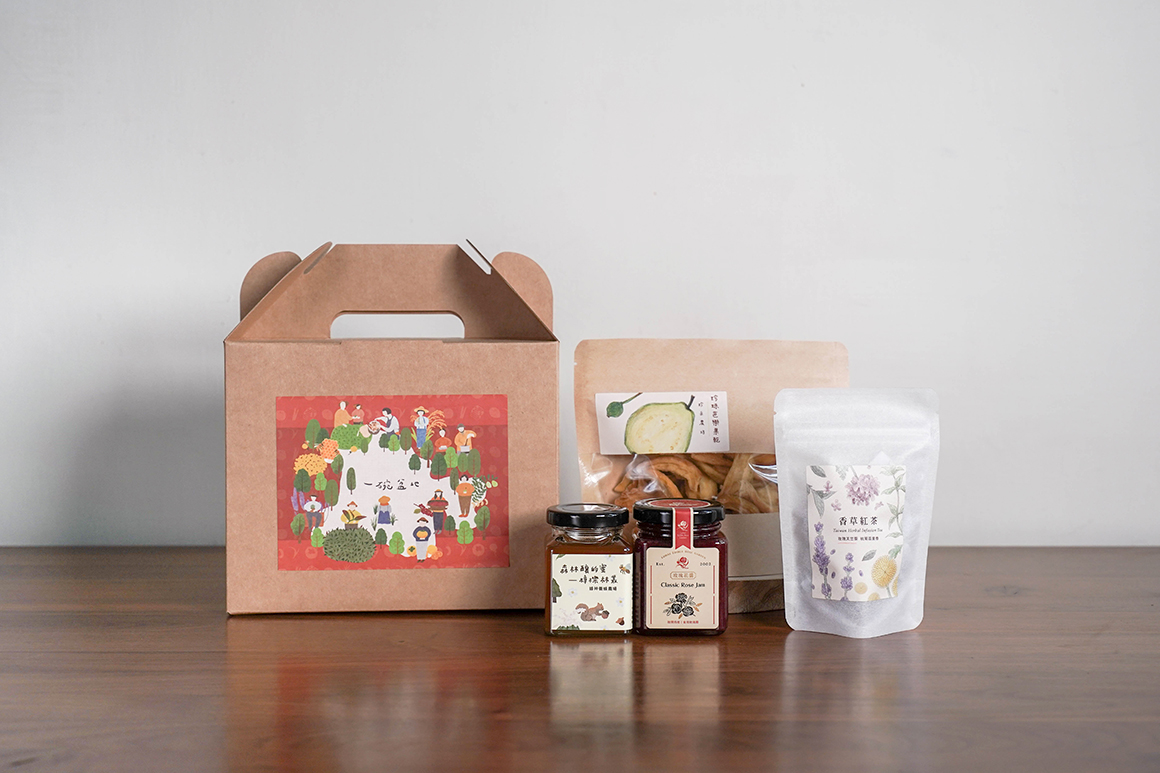 | 規格 | 友善小農手提盒款式A: 穀笠合作社-友善放伴米/一包 山上阿德有機農場 - 薑黃堅果辣油/一罐 傻農老爹-彩鷸茭白筍脆片/一包 茶說旅行 - 有機蜜香紅玉茶包 /5入 友善小農手提盒款式B: 珍采農坊 - 友善珍珠芭樂果乾/一包 茶說旅行-香草紅茶包 / 4入 玫開四度食用玫瑰園 - 玫瑰花醬/一罐 蜂神養蜂農場-森林釀的蜜/一罐 |