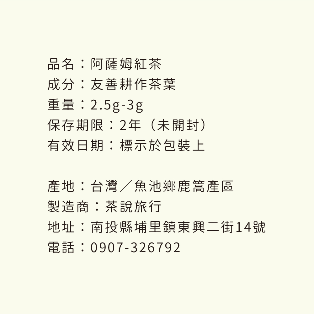 | 產品名稱 | 懶太太【日月潭四大紅茶】頭等阿薩姆茶包|茶說旅行 |