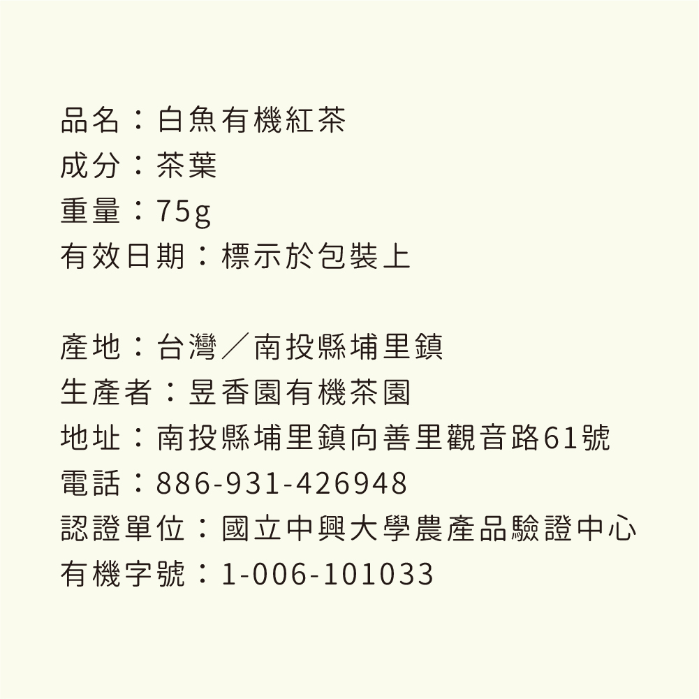 | 產品名稱 | 【懶太太】昱香園白魚紅茶(紅玉台茶18號) |