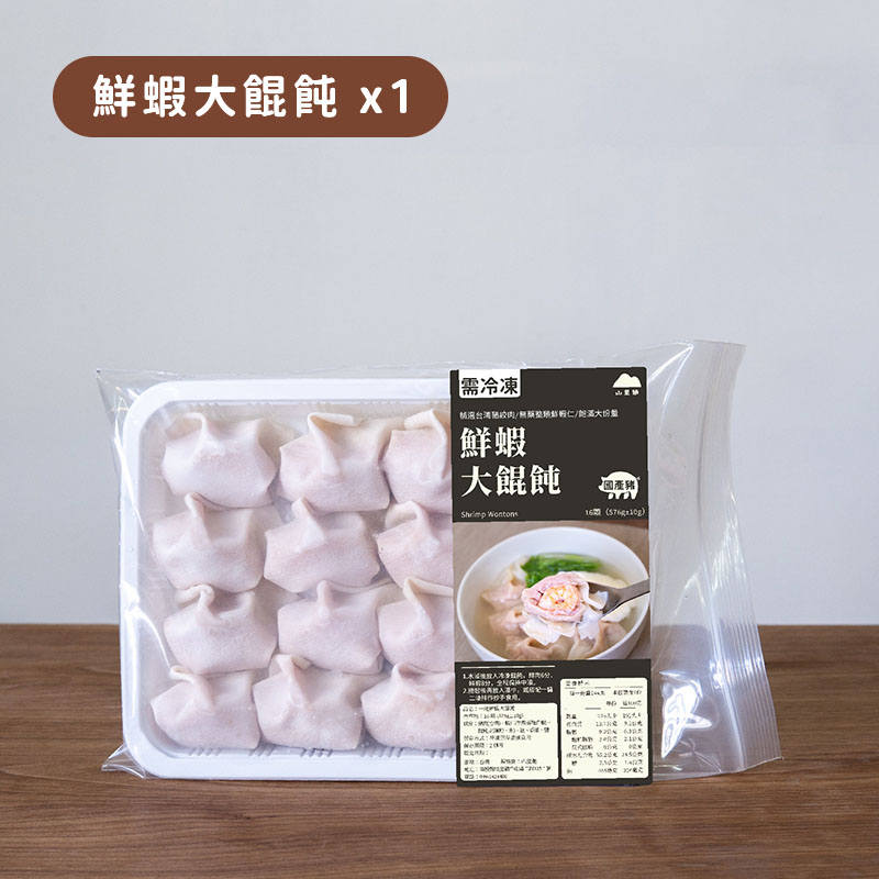| 成分 | 台灣豬絞肉、生態養殖白蝦仁、餛飩皮(麵粉、水)、薑、香油、鹽 |